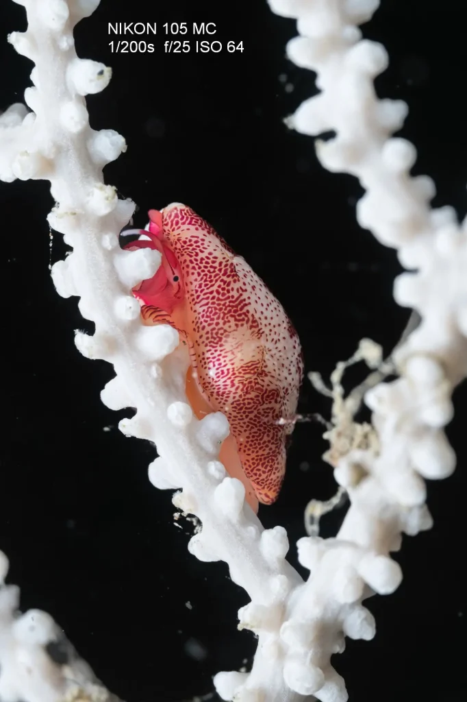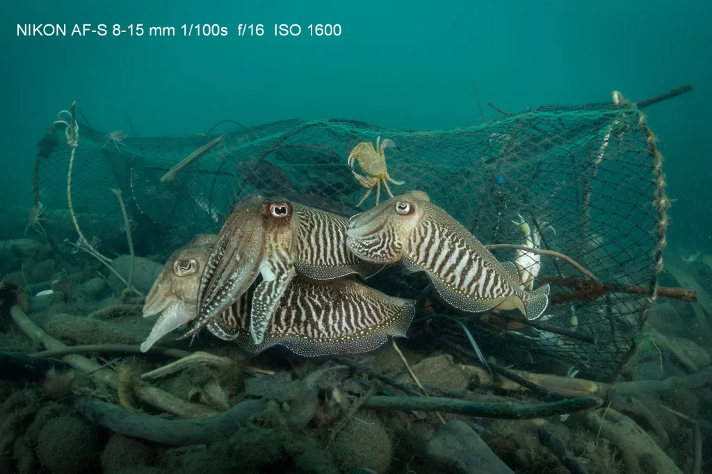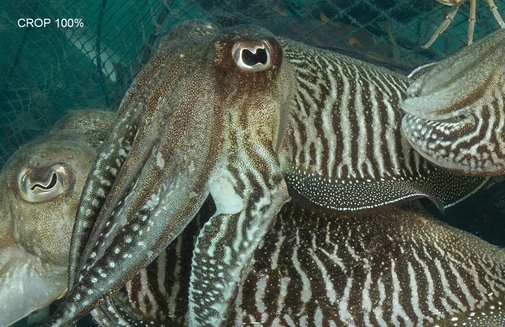 Una delle prime conferme è stata relativa alla qualità d’immagine. I file RAW da 45 megapixel generati dal sensore con tecnologia stacked della Z8 sono incredibilmente dettagliati. Il livello di nitidezza e la possibilità di lavorarli in post-produzione sono notevoli, ben oltre le necessità della maggior parte dei fotografi, anche quelli professionisti. Rispetto alla reflex Nikon di alta gamma (D850), la Z8 presenta alcune differenze nelle prestazioni: la gamma dinamica potrebbe essere leggermente inferiore nelle alte luci, ma offre una resa migliore agli alti ISO. Questo significa che le immagini risultano più pulite e prive di rumore anche a sensibilità elevate, un vantaggio notevole durante immersioni profonde, al crepuscoloo in grotta, dove catturare la poca luce disponibile è fondamentale. In macrofotografia, l’abbinamento con il Nikkor Z MC 105 mm f/2.8 VR S garantisce una definizione straordinaria e una messa a fuoco velocissima silenziosa e precisa. Per i grandangoli, si ottengono ottimi risultati anche con i super economici grandangoli rettilinei Viltrox (20 2.8 e 14 4) e il classico Nikkor 8–15 mm fisheye montato tramite adattatore FTZ II. Il bilanciamento del bianco manuale è estremamente accurato e restituisce toni naturali in luce ambiente, fino a 10-12 metri un aspetto che semplifica il lavoro in post-produzione e riduce la necessità di filtri.