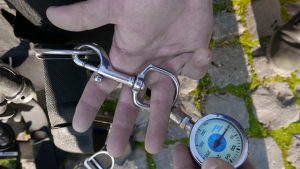 Il moschettone va poi fissato al D Ring ventrale sul lato sinistro del subacqueo